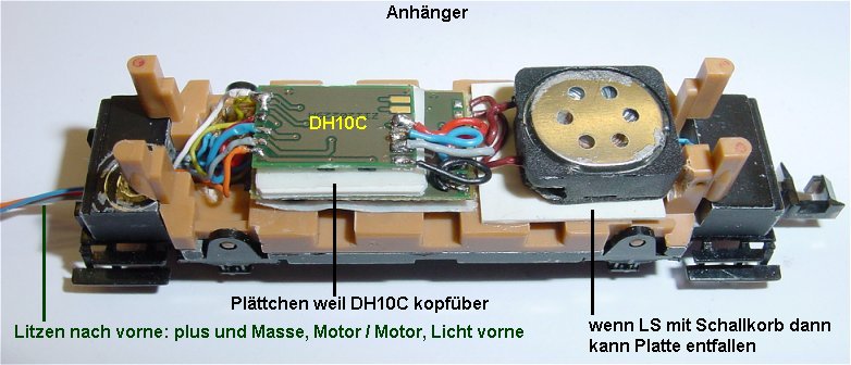 Umbauanleitung: Hier mit einem DH10C Multiprotokoll - Susi Decoder und SH10A Soundmodul. VT 75 Sound bei Doehler&Haass in der Planung