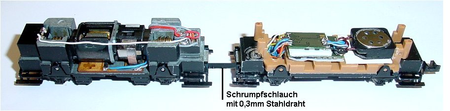 Litzen vom Anhänger können besser verarbeitet werden. Licht vom Decoder (weiß) läuft durch.
