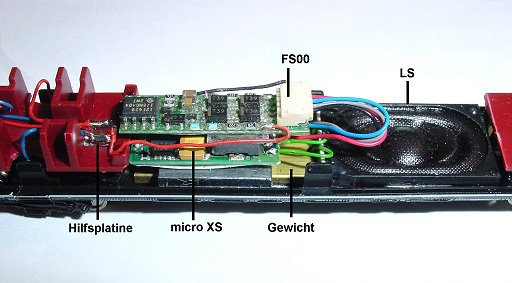Bild und baut statt dem Dietz-Soundbaustein und dem nicht mehr erhältlichen FS00 und dem großen Lautsprecher nun die links im Bild
