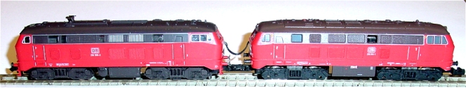Fleischmann BR 218 und Minitrix BR 216 als Sound-Doppeltraktion.